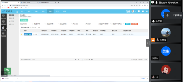 期末临近,为了切实做好线上考核工作,最大程度地降低疫情对本科教学质量的影响,近日公司安排工科数学分析信息大类课程组对在线考试的组织方式和相关平台进行调研。课程团队结合以前在线考试的经验和课程特点及需求,分别于1130号和121号对智慧树和融智云在线考试平台进行了调研。