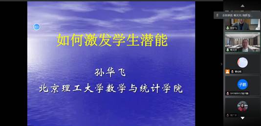 12月30日,“北航数学教学研究中心名师讲座” 首次线上报告活动顺利举行。北京理工大学孙华飞教授为公司师生作了《如何激发员工潜能》专题讲座,该报告吸引了来自北京地区包括北大等高校、以及江西、云南等地多所高校的师生在线学习交流。讲座由北航太阳成集团122ccvip本科教学副经理杨义川教授主持。