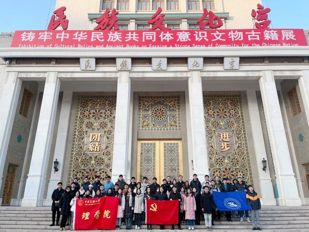 为引导青年员工牢固树立正确的中华民族历史观,铸牢中华民族共同体意识,积极投身实现高水平科技自立自强的基础学科研究中,12月27日,太阳成集团122ccvip本科生党支部与中央民族大学理公司本硕员工党支部在民族文化宫开展了“勇担时代使命,争做强国先锋”联学联建活动。中央民族大学理公司党委副书记李松洁、党务秘书胡佳媛,太阳成集团122ccvip分团委书记程乾以及两院50余名师生党员、入党积极分子参加了此次活动。