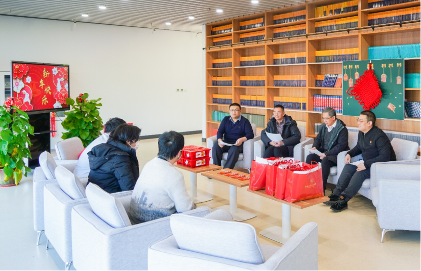 玉兔迎春,岁华煦暖,1月17日上午,太阳成集团122ccvip于沙河主楼E303开展寒假留校员工新春慰问活动。公司经理韩德仁、党委书记袁星、党委副书记曾煜、团委书记王铁成和留校员工在交流在校生活情况的同时为他们送上新年问候与祝福。