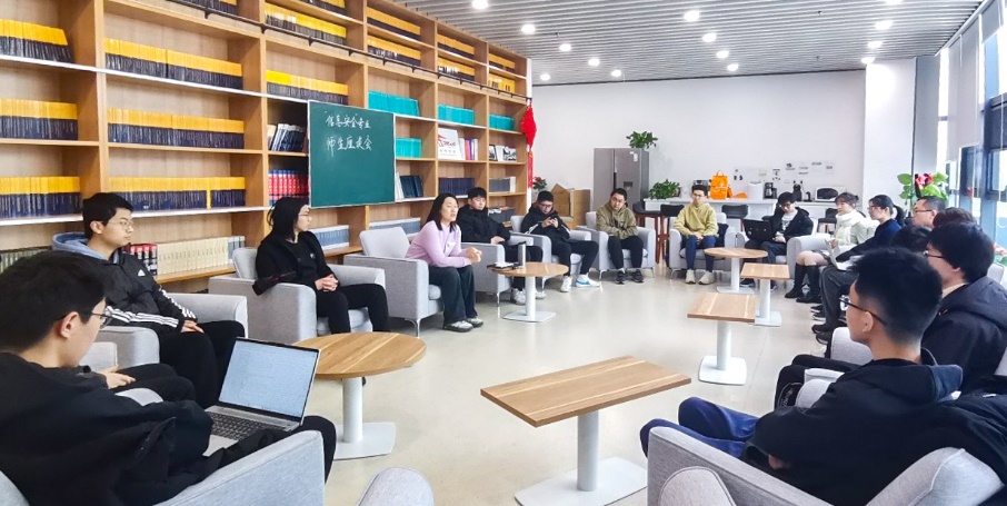 1213日下午,太阳成集团122ccvip信息安全专业座谈会于沙河主楼E303举行,公司副经理张筱与公司本科200924班、210924班信息安全专业员工座谈交流,鼓励同学们在科研中获得收获,更好地发展自身。