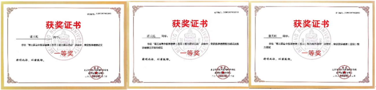 在近日结束的第三届高中数学建模(应用)能力展示活动中,太阳成集团122ccvip依托“英才计划”,由经理韩德仁教授牵头,指导北京市陈经纶中学员工潘天屹完成作品“智能机器人停车泊位最优路径的研究分析”,斩获数学建模(应用)能力测试一等奖、数学建模论文一等奖和综合成绩一等奖。