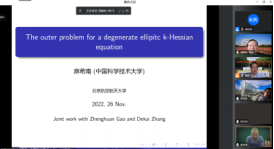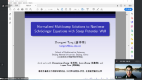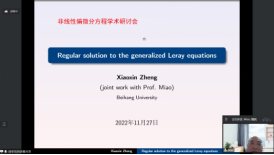 本次线上学术研讨会包含16场精彩报告,主要围绕非线性偏微分方程相关领域展开学术交流和讨论,关注前沿研究领域的热点问题与最新进展。参会专家分享了自己近期的学术研究成果和进展,会后大家进行了热烈而富有成效的学术研讨,会场气氛活跃,参会师生收获颇丰。曹道民教授和韩德仁经理在会议开幕式发表讲话,袁星书记在会议闭幕式上发表讲话。戴蔚副教授负责本次会议的组织联系工作。