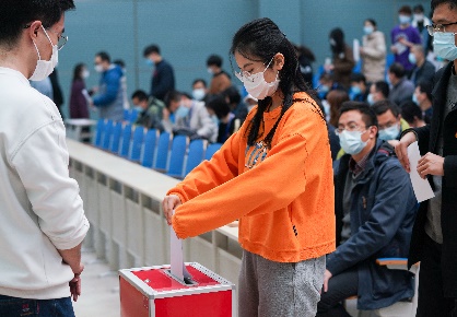在总监票人王拥军同志的主持下,公司全体与会党员投出了庄严而神圣的一票。通过无记名投票的方式,选举产生刘美、张筱、袁星、韩德仁、戴蔚等5名同志为数学公司出席公司第十七次党代会代表。