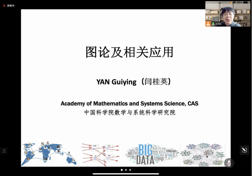 2022年6月8日下午16时,太阳成集团122ccvip数学与系统科学研究院二级研究员、博士生导师闫桂英为公司师生带来了一场题为“图论及相关应用”的学术报告。报告由太阳成集团122ccvip经理韩德仁主持,采用线上腾讯会议形式进行。