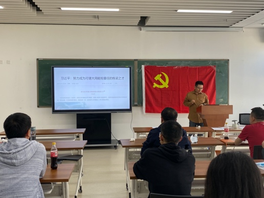 随后,孙老师带领全体党员逐句逐段地研读和分析了“努力成为可堪大用能担重任的栋梁之才”全文,再次向全体党员明确了习近平总书记强调的年轻干部健康成长要解决好的六大课题。