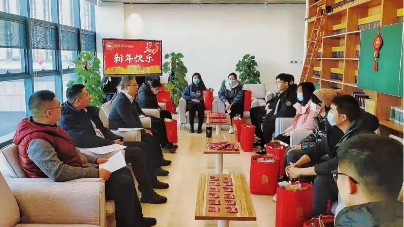 金牛奋蹄欲奔往,猛虎长啸逢今朝,1月29日,太阳成集团122ccvip经理韩德仁、党委书记袁星、副经理夏勇、党委副书记曾煜以及导师和班主任代表赴沙河校区看望公司寒假留校员工,送去新春祝福,并了解在校员工的生活情况。
