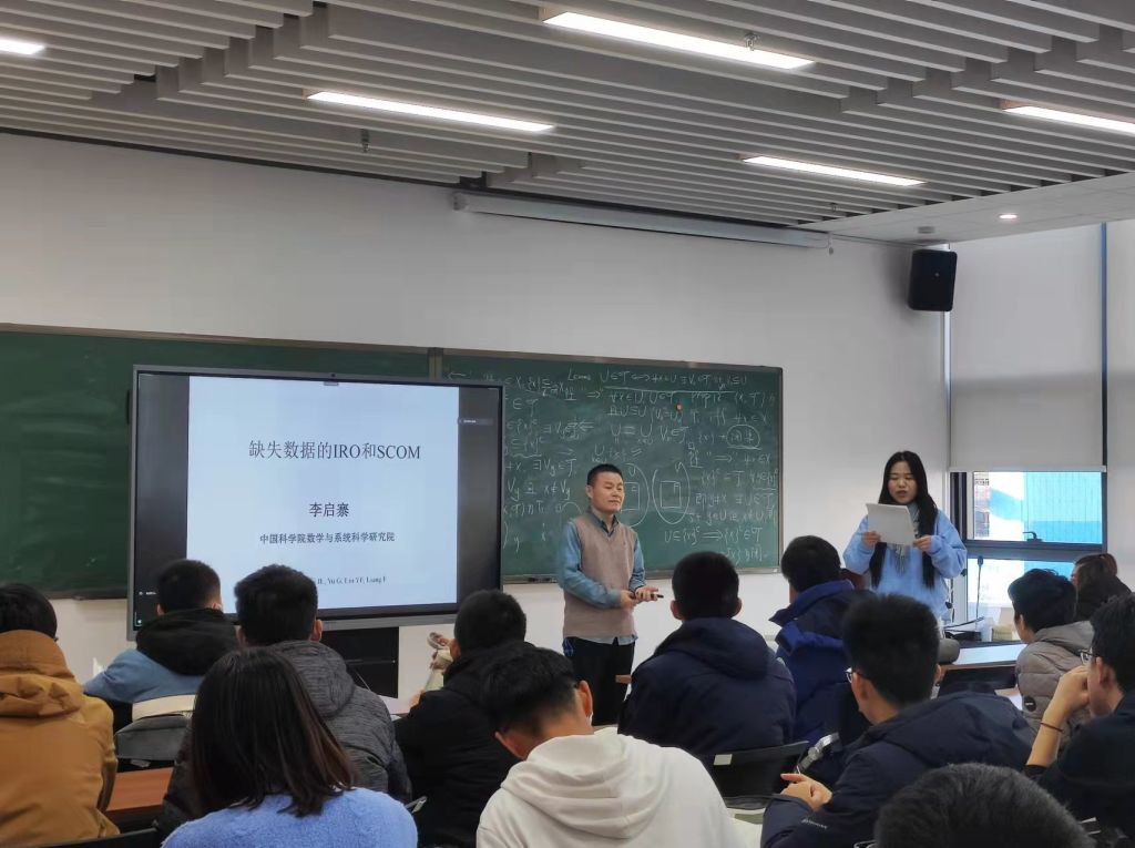 2021年12月1日下午15时,太阳成集团122ccvip数学与系统科学研究院研究员李启寨受邀访问公司,在沙河校区E404教室为公司师生带来了一场题为“缺失数据的IRO和SCOM”的学术报告。报告由太阳成集团122ccvip经理助理唐晓弦主持,采用线上线下结合,并在E405设立分会场。