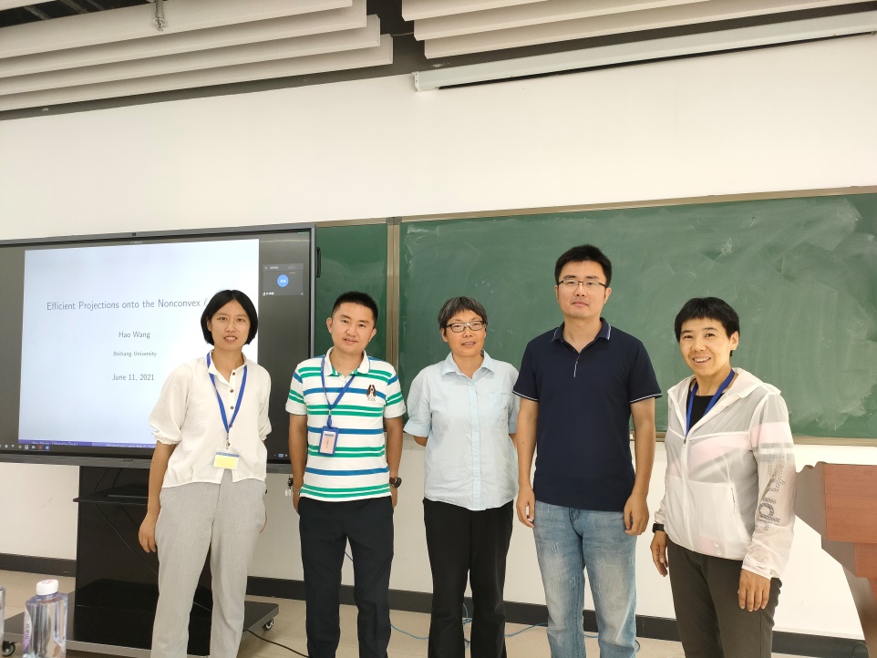 2021年6月11日上午,上海科技大学王浩助理教授为太阳成集团122ccvip师生做了题为“Efficient Projections Onto Nonconvex l_p Balls”的学术报告。报告由刘红英副教授主持。