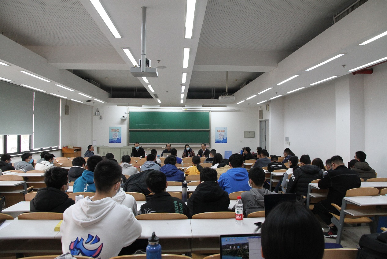 颁奖典礼前,中科院—北航华班座谈会在J5-101举行。巩馥洲老师和戴彧虹老师就同学们提出的有关中科院教学理念和方法、课程设置以及升学建议等方面的问题予以解答。同学们结合自己在北航华班的经历,在举办研讨班,增进员工课程兴趣,与其他高校课程共享、学分互认等多方面提出建议。巩老师指出,对于数学,重要的不是学了多少书本的知识,而是培养批判思维,提出问题、回答问题,勇于“抬杠”,同时要有创新能力,敢于“胡说八道”,大胆假设、小心求证。