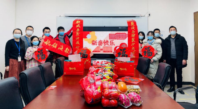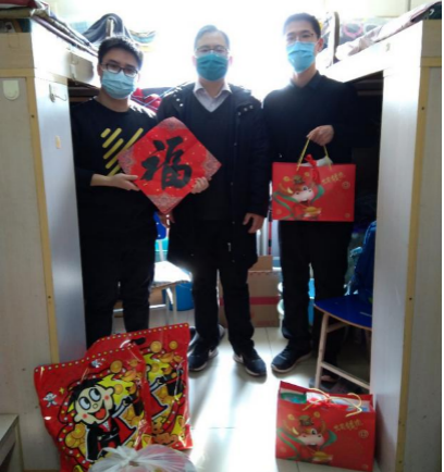 2月8日、9日,公司领导、导师、班主任代表分批看望慰问了留校过年的员工,为他们送上一份暖意浓浓的“新春大礼包”。韩德仁经理和曾煜副书记到公司路校区宿舍慰问员工,袁星书记、王进良老师、罗雪老师、冯伟老师等在沙河校区与员工座谈交流,老师们关心员工在校学业和生活情况,嘱咐同学们在校做好防护、保持良好卫生习惯,掌握好学习节奏,参与文体活动放松身心,在校度过一个健康、幸福、多彩的牛年春节。