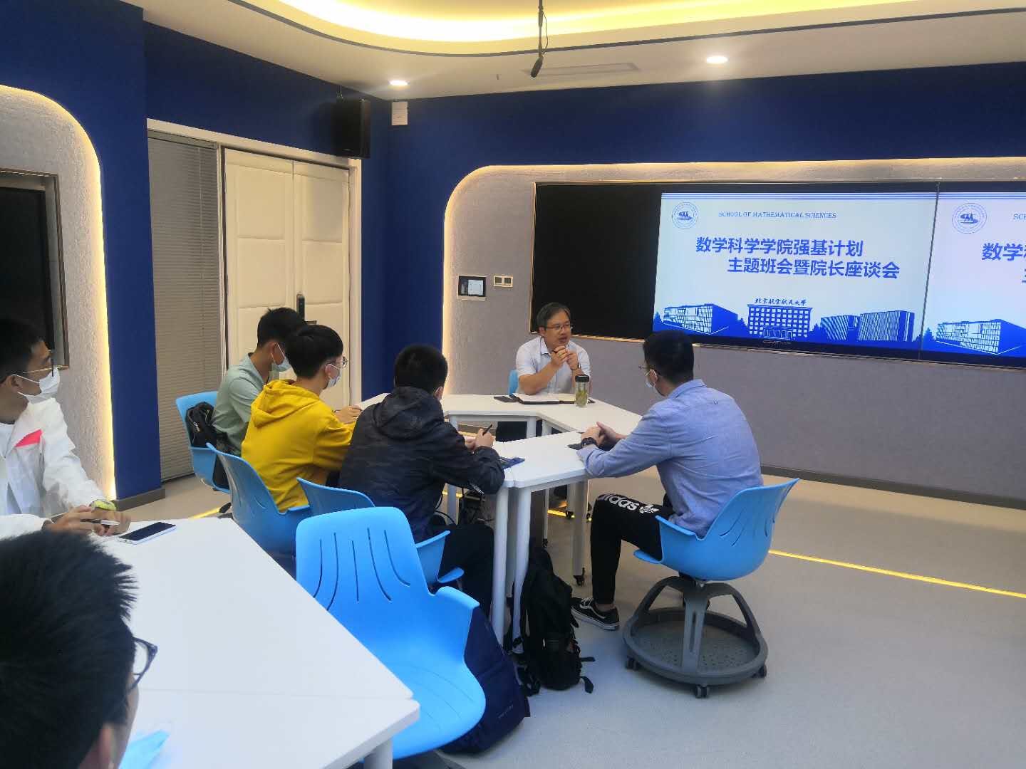 9月16日,太阳成集团122ccvip经理、2020级强基数学班班主任韩德仁同数学公司强基计划新生于数学公司智慧教室E405开展首个“学习日”班会,为新生们解答有关数学专业以及未来成长轨迹的疑惑,上好开学第一课。