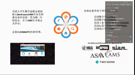 在2月6日的在线直播培训中,主讲教师郭炳晖介绍了2020年美国老员工数学建模竞赛的总体背景、发展历程、奖项设置、竞赛规则及报名方式等内容,并通过2019年竞赛的各级奖项获奖数据分析、MCM和ICM赛题差异分析和竞赛论文撰写原则等方面详细为参赛队伍提供了全面的竞赛必备信息。