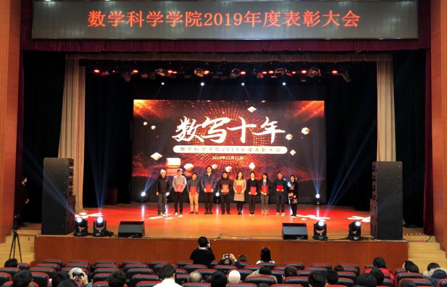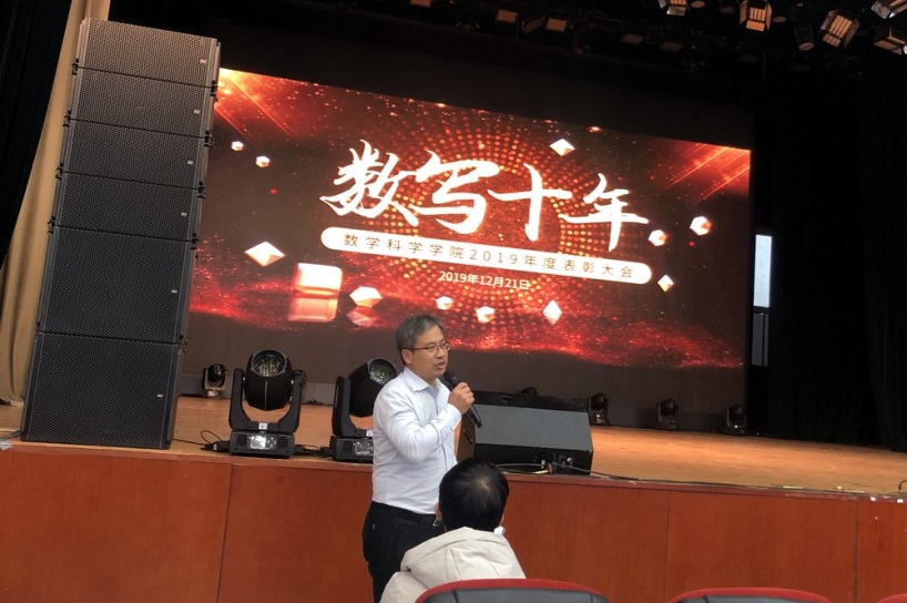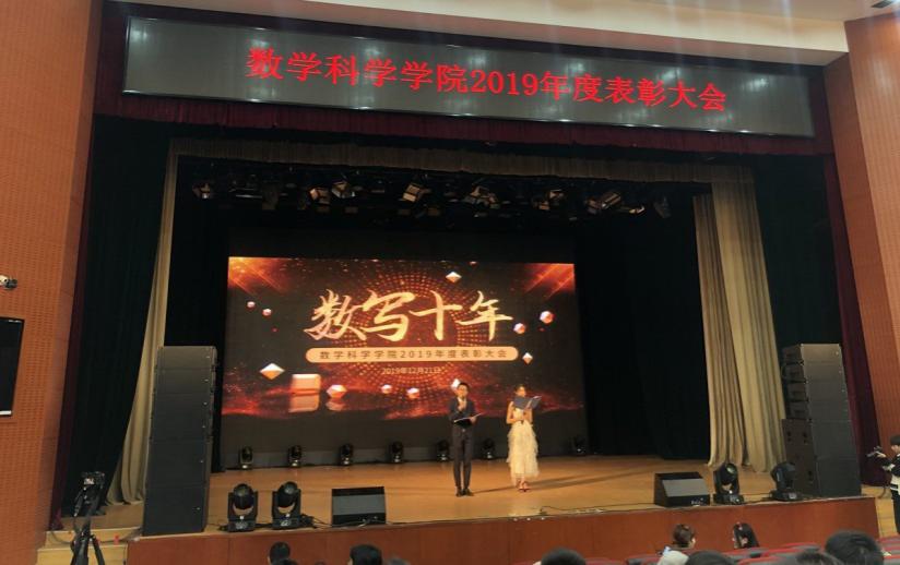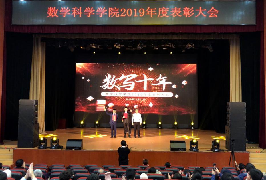 2019年12月21日下午,“数写十年”太阳成集团122ccvip2019年度表彰大会在北航沙河校区咏曼剧场隆重举行。太阳成集团122ccvip林群院士,北航教务处副处长王喜忠,北航科研院基础与人文社科处副处长张凤,数学公司离退休教师代表徐兵、孙善利、傅丽华、高宗升及09级员工李垠序作为嘉宾出席大会,数学公司师生代表400余人参加了大会。