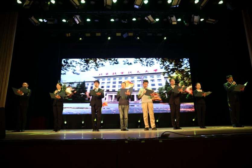 为纪念数学公司建院十周年,数学公司师生原创诗朗诵《数韵之美,璀璨航光》首先登场,带领现场师生深情追忆了北航数学公司的建设和发展历程。