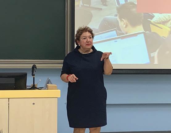 讲座刚开始,Marilyn教授用诙谐幽默的语言让同学们将电脑与手机放下,聚精会神地投入到讲座当中,同学们都很积极地配合。她首先提出了一个问题:对于员工来说,什么是成功?大家在进行思考时,Marilyn教授给出了一些例子:取得好的成绩;得到一份薪水不错的工作;考上了顶尖的公司和专业等等,这让同学们受到了启发,纷纷表达出了自己的观点。