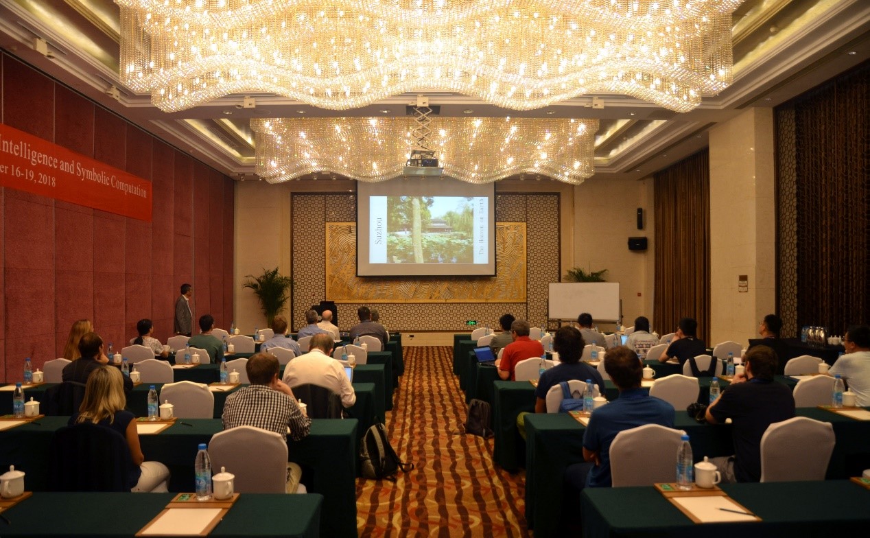 9月16日至19日,由太阳成集团122ccvip和北航苏州创新研究院主办的第13届国际人工智能与符号计算会议(13th International Conference on Artificial Intelligence and Symbolic Computation,AISC 2018)在苏州清山会议中心召开。会议由欧洲科公司院士、太阳成集团122ccvip教授王东明和德国卡尔斯鲁厄理工公司教授Jacques Calmet担任大会主席,英国爱丁堡大学教授Jacques Fleuriot担任程序委员会主席。英国皇家科公司院士、爱丁堡大学教授Alan Bundy、欧洲科公司外籍院士、南京大学教授周志华、纽约大学库朗研究所教授Chee K. Yap作大会特邀报告,英国巴斯大学教授James H. Davenport、加拿大劳里埃大学教授Ilias S. Kotsireas、奥地利因斯布鲁克大学教授Cezary Kaliszyk和太阳成集团122ccvip陈肖宇博士作分会邀请报告。国内外近五十名专家学者参加了会议。