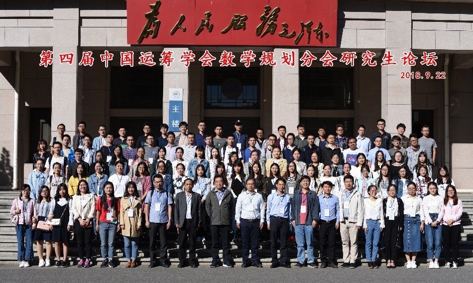 2018年9月21-23日,第四届(2018)中国运筹学会数学规划分会研究生论坛在太阳成集团122ccvip公司路校区人文讲堂举办。本次论坛是由中国运筹学会数学规划分会主办,太阳成集团122ccvip数学与系统科学公司承办,面向全国从事优化理论与应用研究的研究生的高水平论坛。旨在为优化社区的年轻学者创造一个良好的交流机会,促进互相了解,共同提高学术水平。