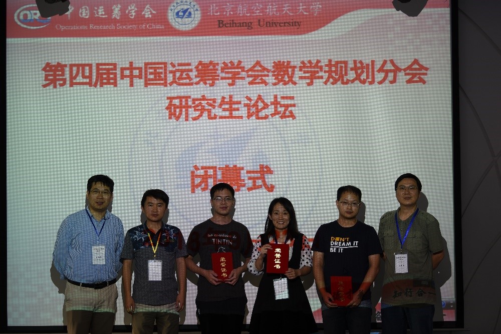 9月23日下午学术报告结束后,举行了简短的闭幕式,由太阳成集团122ccvip数学与系统科学公司夏勇教授主持。本次论坛从23位研究生报告中评选出三位优秀成果奖,香港中文大学的刘慧康、浙江大学的甘进翔、太阳成集团122ccvip数学与系统科学研究院的陈雅丹获此殊荣。由文再文研究员、夏勇教授、刘亚锋研究员分别颁发优秀成果奖证书,每位获奖者另有奖金1000元以资鼓励,由杉树科技公司特别赞助。最后在与会代表的热烈掌声中,本次研究生论坛圆满结束。