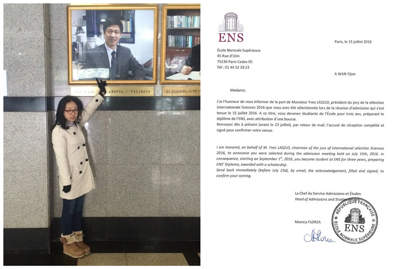 在刚刚结束的巴黎高师国际生选拔中,2013级华罗庚班万艺君同学表现出色,被巴黎高师数学系录取。 巴黎高师是法国最具盛名的精英公司,已为法国培养了12位诺贝尔奖得主和10位菲尔兹奖得主。同时,它还培养出了众多虽未拿奖,但却开创了百年潮流、足以永垂史册的科学、文化人才。如数学界的傅里叶、勒贝格、伽罗华;哲学界的让-保罗·萨特和米歇尔·福柯等。