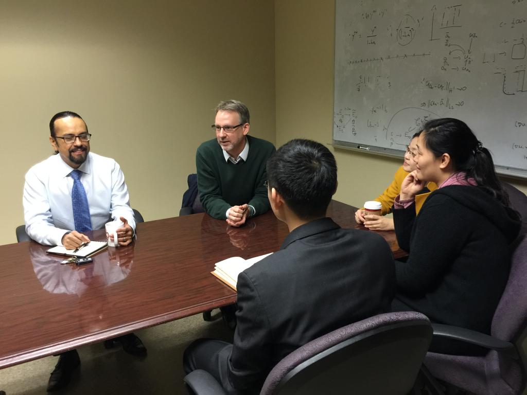 (与统计系系主任Valen E.Johnson教授,统计系研究生招生委员会主席黄建华教授会面)