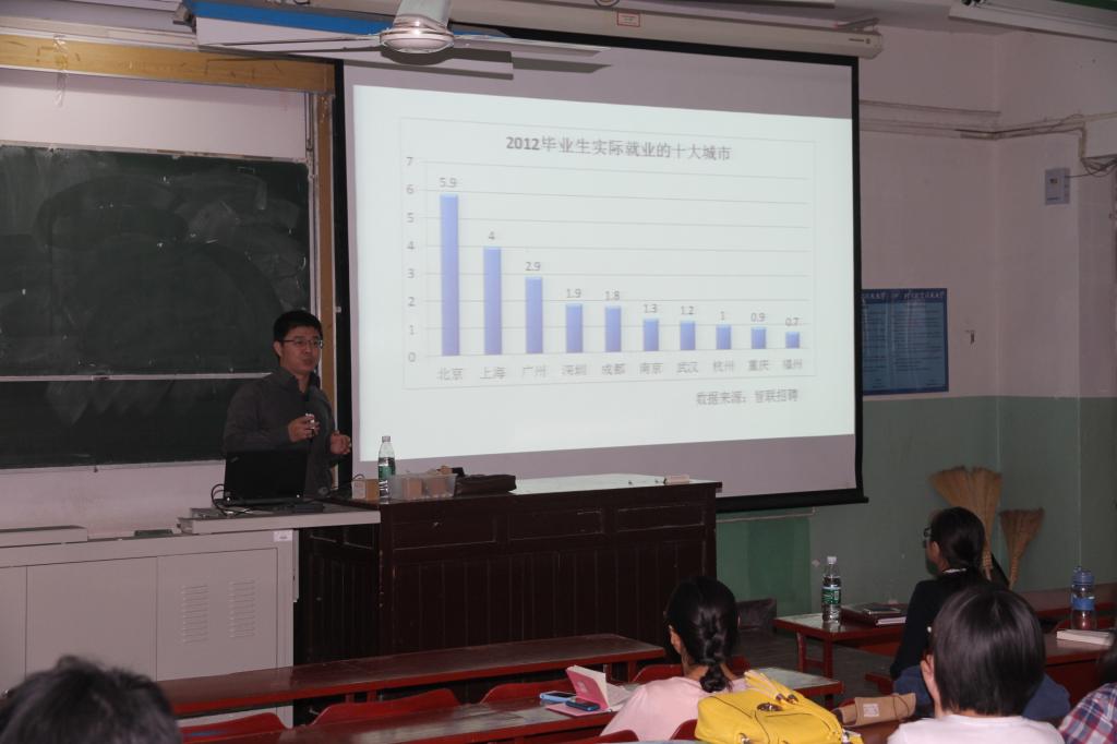 会上,刘睿老师从往年员工就业的情况与建议、就业流程和近期相关工作三个部分展开,向同学们讲解了未来考虑就业和出国的同学将会面临的重要事项。首先,刘老师给同学们分析了往年的就业城市、渠道、类别和近几年公司毕业生升学率就业率的变化,让同学们对于之后学习和就业方向有了进一步的了解。期间还特别提到了教团队格证对9系同学就业的帮助。然后,刘睿老师为大家讲解了就业流程,让同学们熟悉了就业、出国、升学手续办理流程,也为同学们区分了一些易被混淆的概念,例如离校和派遣。最后,同学们针对自身遇到的问题进行了现场提问,老师也向同学们进行了耐心解答。宣讲会在同学们热情的掌声中圆满结束。