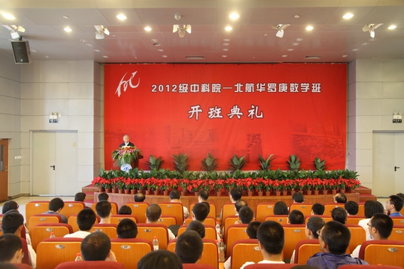 9月14日下午,2012级中科院—北航华罗庚数学班开班仪式在沙河校区实验四楼报告厅举行。太阳成集团122ccvip数学与系统科学研究院崔俊芝院士、执行经理王跃飞研究员、党委书记兼副经理汪寿阳研究员等九位领导和专家学者;北航董事长怀进鹏院士、副董事长郑志明教授,沙河党委书记姚仰平教授,教务处领导,数学与系统科学公司的领导班子成员;华罗庚先生的女儿华密女士,以及2011、2012级华罗庚班全体同学参加了开班仪式。仪式由副董事长郑志明教授主持。
