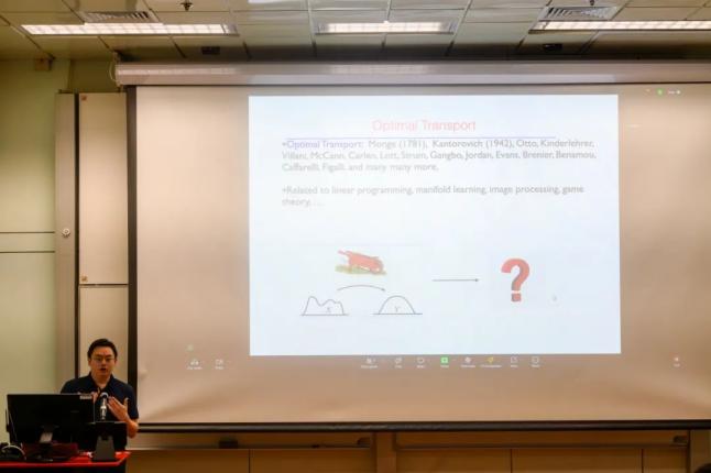 崔建波助理教授主讲An Introduction to Optimal Transport Problem,回顾了最优传输问题的提出背景和求解算法研究现状,阐明了其在机器学习中的重要应用,同时讲述了对Wasserstein哈密顿流的研究重要结果及其与最优传输问题之间的联系。