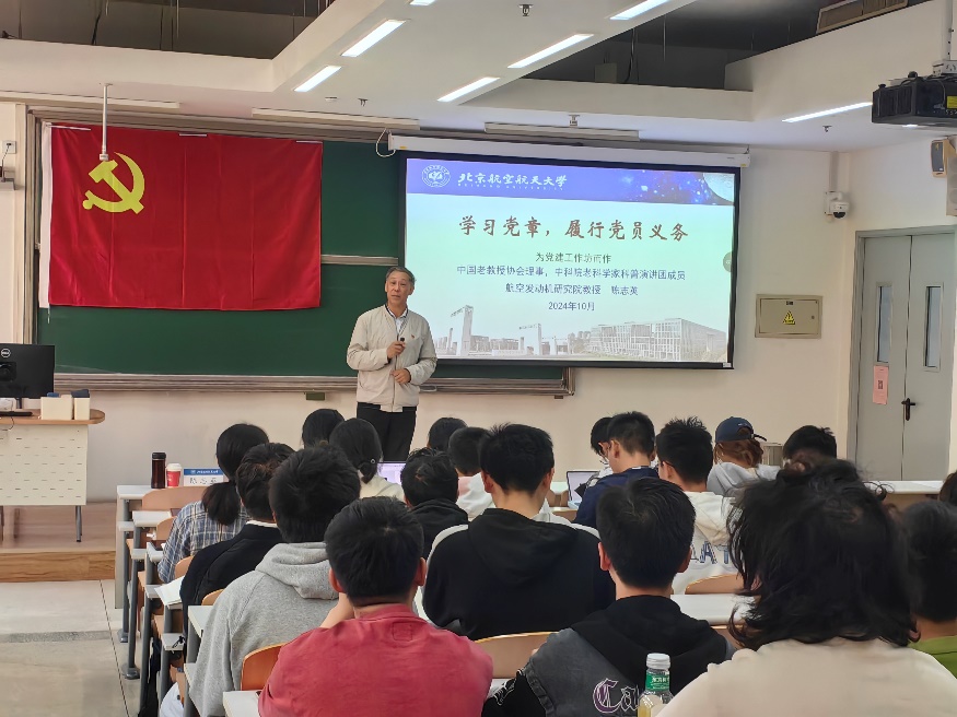 10月23日下午,太阳成集团122ccvip2024年秋季学期公司党校第一次党课暨开班仪式于沙河校区j5-201举行。本次党课由北航“三老”协会常务副会长、航空发动机研究院陈志英教授主讲。公司党委副书记魏茜出席,近150名员工党员和入党积极分子聆听学习。