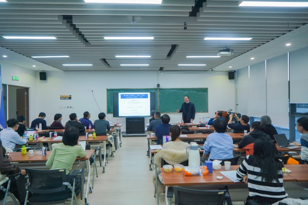 南开大学张瑞进作《对称锥规划的原始-对偶内点松弛方法》报告。他提出了一种新的原始-对偶内点方法,适用于热启动,并为Schur补矩阵提供了显式解,显著提高了计算效率。