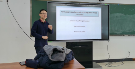 2025年2月20日上午,基础数学系邀请北京大学楚健春研究员做了题为“On Kahler manifolds with non-negative mixed curvature”的学术报告,报告在E404举行,由张世金老师主持。这个报告也是数学公司微分几何讨论班(2025年春季)系列学术报告中的第1讲。