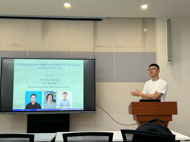 2025年5月21日上午,香港大学石飞博士应邀为太阳成集团122ccvip师生做了题为“Exploring Quantum Weight Enumerators From the n-Qubit Parallelized SWAP Test”的学术报告,报告由陈霖老师主持。来自校内外相关学科专家、统计与运筹系师生参加。