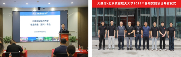 自2025年6月以来,北航数学学公司通过调研走访、师生交流和协议洽谈等多种形式与天融信科技集团共同推进校外人才培养基地的建设。